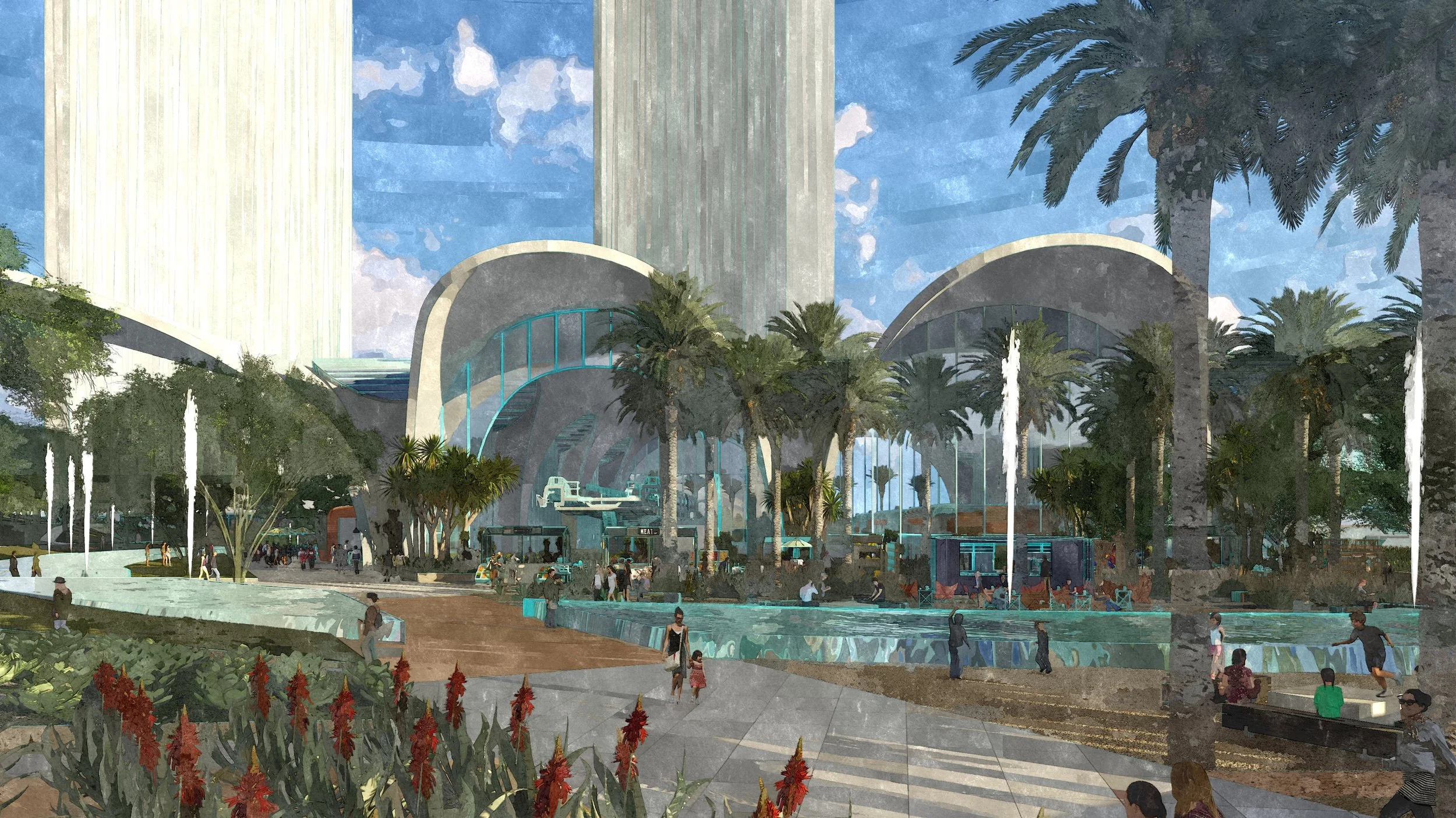 The South American Corporation, Ropeline was planning a gondola line that would provide vertical transportation from the Las Vegas Convention Center to the historic downtown Las Vegas (north of the current Strip, Las Vegas). The gondola line was to start just north of the convention center, stop once at the Stratosphere and then finish at Fremont Street. McCullough’s scope was to assist in the design of the three stations, turning these locations into more than a transit stop, creating a true sense of place for each.